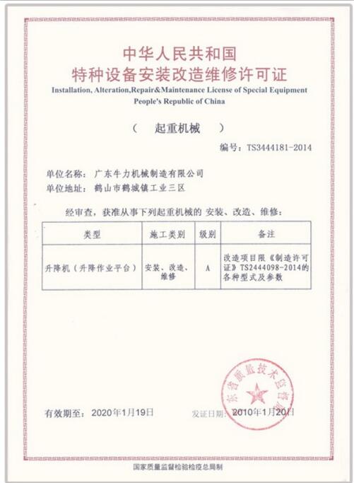 • 升降機(jī)特種設(shè)備生產(chǎn)許可